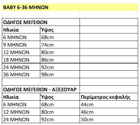 18 ΜΗΝΩΝ (86 cm),2 ΧΡΟΝΩΝ (92 cm),4 ΧΡΟΝΩΝ (104 cm)